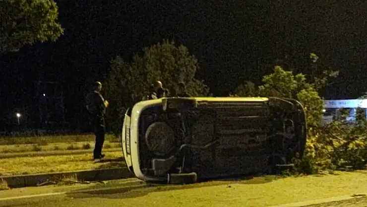 Konya'da refüje çarpan otomobil yan yattı! 2 yaralı