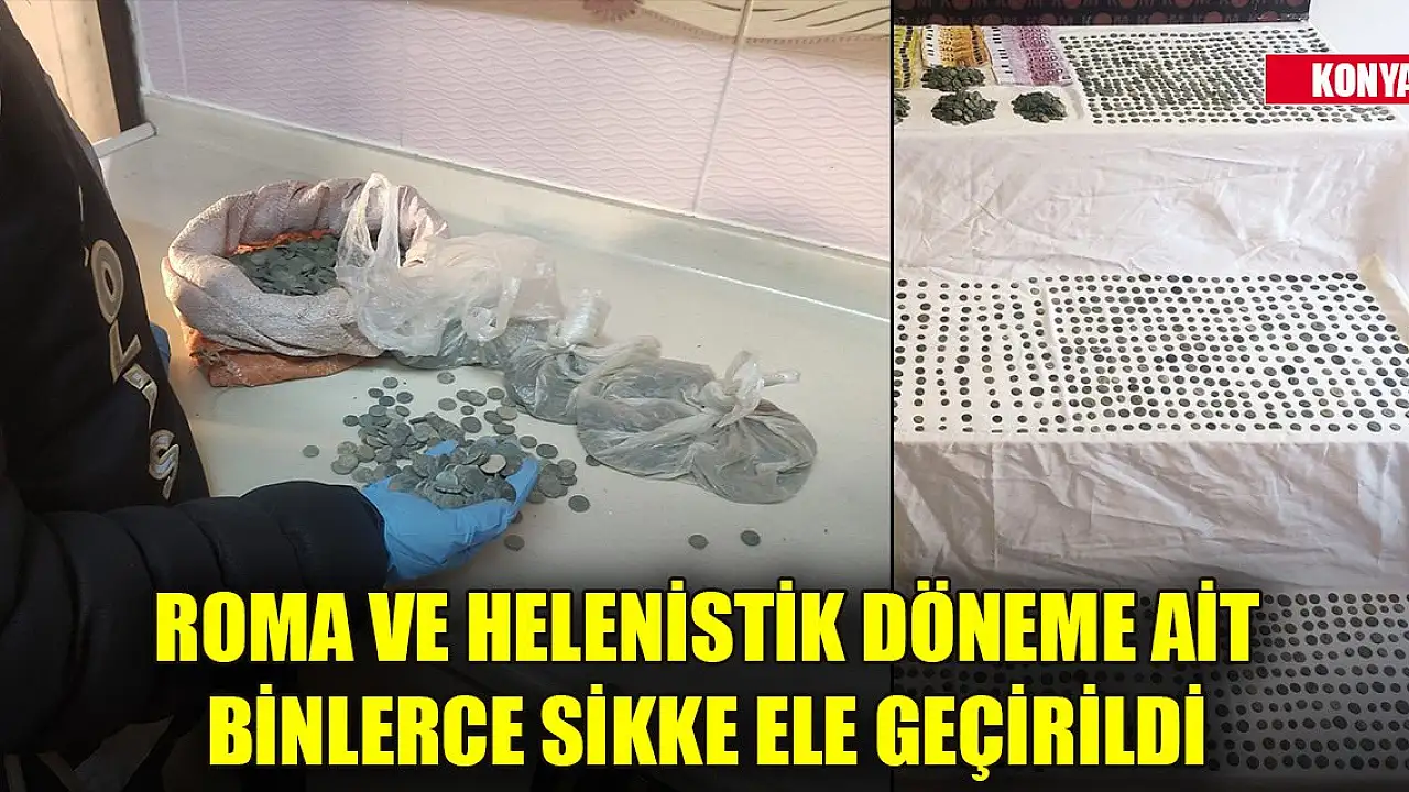 Konya'da KOM Şube Müdürlüğü ekipleri kültür varlıklarını korumak adına önemli bir operasyon gerçekleştirdi. Tarihi eser saklandığı değerlendirilen bir işyerine operasyon düzenlendi. İşyerinde yapılan aramada Roma ve Helenistik dönemine ait binlerce sikke ele geçirilirken olayla ilgili 2 kişi gözaltına alındı.