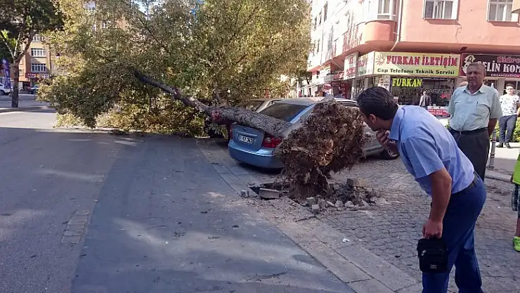 Konya'da römorkun çarptığı ağaç park halindeki otomobillerin üzerine devrildi. Otomobillerde hasar oluşurken ağacın devrilme anı güvenlik kamerasınca kaydedildi.