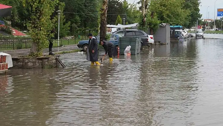 Konya'da sağanak yağış caddeleri göle çevirdi