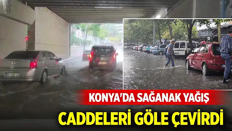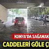 Konya'da sağanak yağış caddeleri göle çevirdi