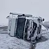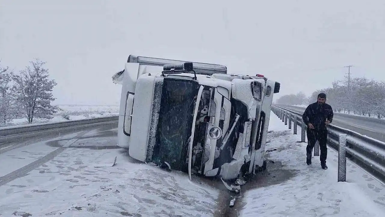 Konya'da saman balyası yüklü tır devrildi: 2 yaralı