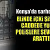 Konya'da sarhoş kadın elinde içki şişesiyle caddeye indi, polislere sevgilisini arattı!