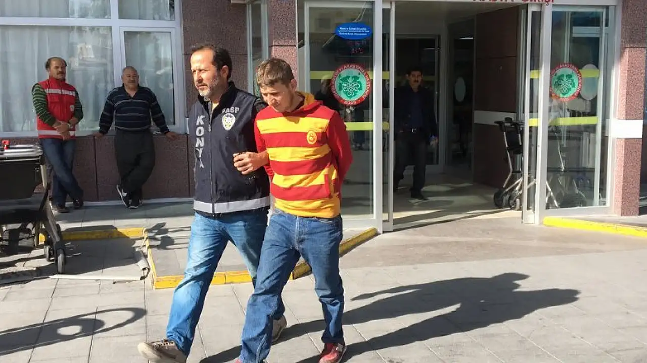 Konya'da hırsızlık amacıyla girdiği evde karşılaştığı ev sahibinin cüzdanını, boğazına satır dayayıp gasbettiği öne sürülen zanlı tutuklandı.