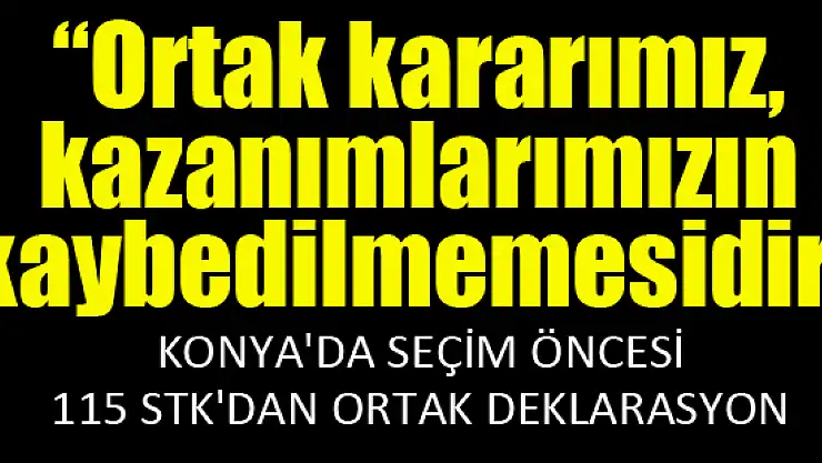 Konya Sivil Toplum Kuruluşları tarafından yayınlanan deklarasyonda, 'Ortak kararımız, kazanımlarımızın kaybedilmemesidir' denildi.