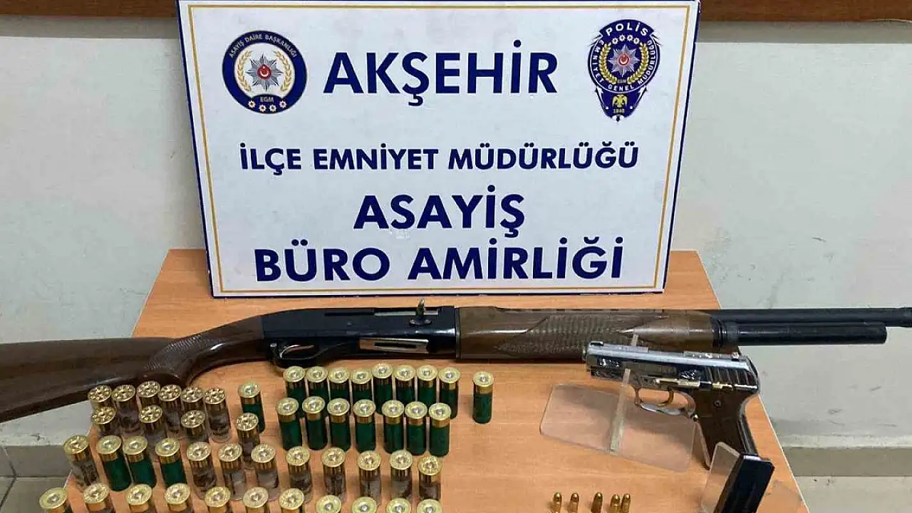 Akşehir'de İstasyon Mahallesi'nde meskun mahalde havaya rastgele ateş açıldığı ihbarı üzerine durdurulan araçta bulunan kişi yanında bulunan ruhsatsız tabanca, tüfek ve mermilere el konulduktan serbest bırakıldı.
