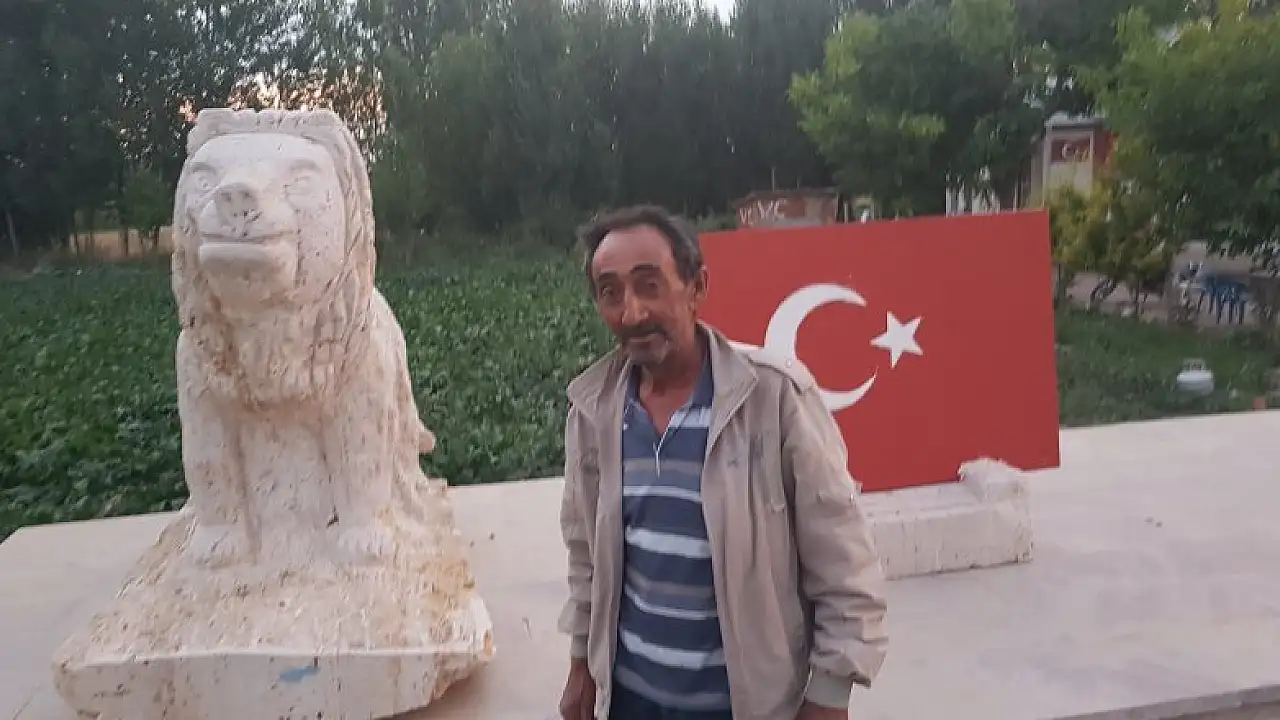 Mardin'de 2016 yılında PKK'lı teröristlerin Kızıltepe-Derik karayoluna tuzakladıkları patlayıcıyı askeri aracın geçişi sırasında infilak ettirmesiyle şehit düşen Uzman Çavuş Enes Kaya'nın anısına komşusu Salih Kartal, evin önüne mermerden bayrak ve aslan figürü yaptı.