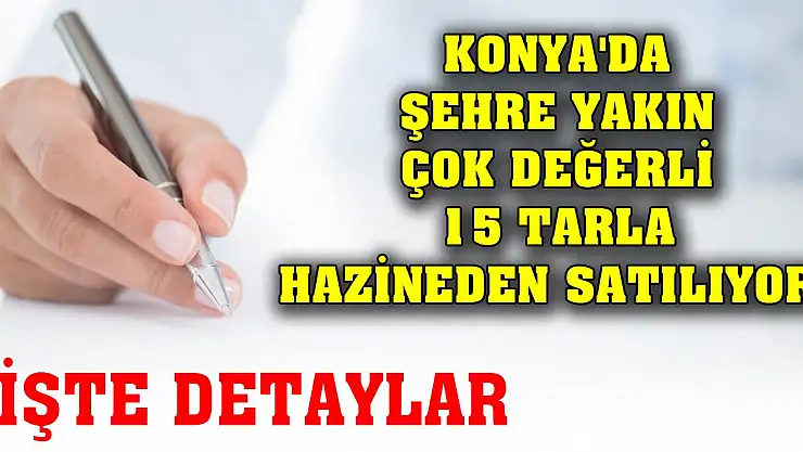 Konya’da şehre yakın Sulutas, Sille Subaşı, Sızma Fevzi Çakmak, Erenkaya, Karadiğin, Kızılören, Kilistra ve Pamukçu Mahallelerinde 15 tarla satışa çıktı.