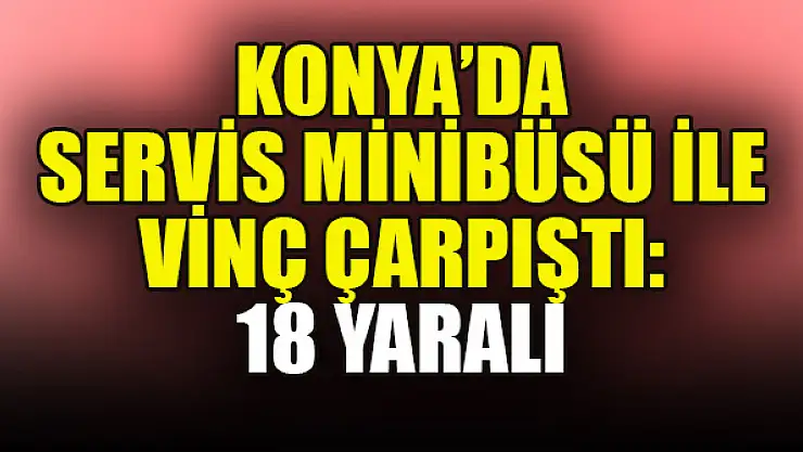 Konya'nın Meram ilçesinde vinç ile servis minibüsünün çarpışması sonucu meydana gelen trafik kazasında 18 kişi yaralandı.