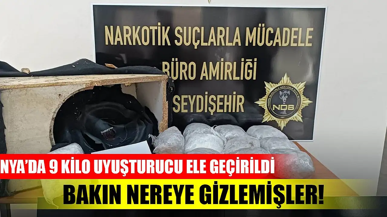 Konya'nın Seydişehir ilçesinde şüphe üzerine durdurulan bir araçta yapılan aramada, ses sistemine gizlenmiş paketler halinde yaklaşık 9 kilo uyuşturucu madde ele geçirildi.