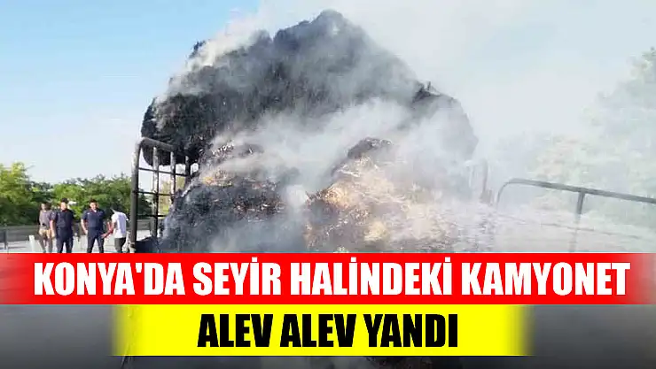Konya'nın Ereğli ilçesinde saman yüklü kamyonet, seyir halindeyken alev aldı.