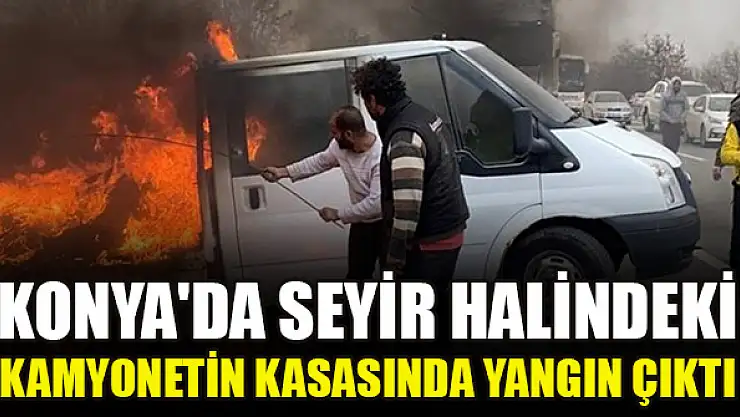 Konya'da seyir halindeki kamyonetin kasasında yangın çıktı