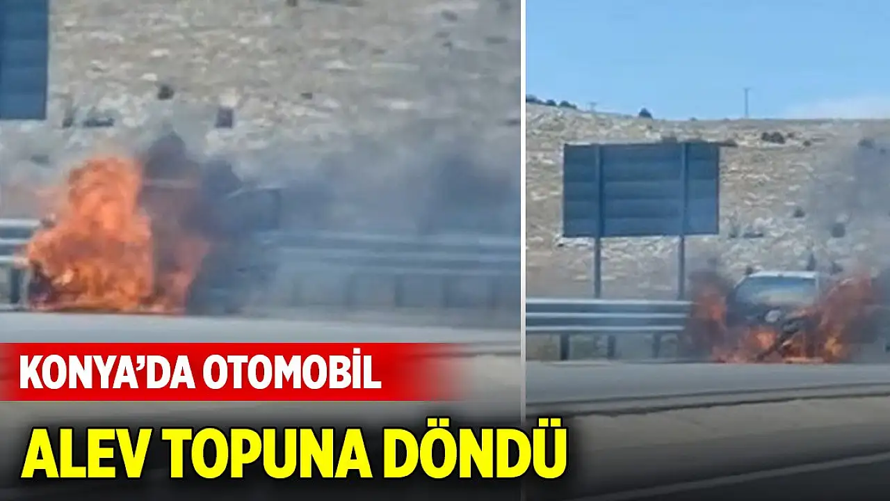 Konya'da seyir halinde olan bir otomobil alev topuna dönerken, o anlar kameraya yansıdı.
