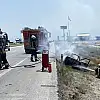 Konya'nın Karapınar ilçesinde seyir halindeki otomobil bir anda alev aldı. Araç sürücüsü ile eşi ve çocuğu son anda araçtan inerek canlarını kurtardı. Yangında otomobil tamamen kullanılamaz hale geldi.