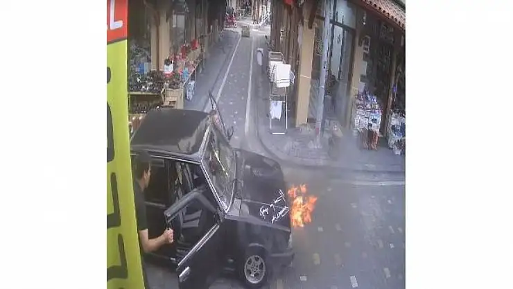 Bu sırada aracın ön bölümünden bir anda alevler yükseldi.