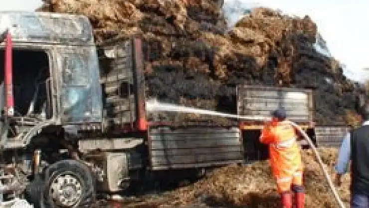 İlyas Günter (51) idaresindeki 42 AP 079 plakalı saman yüklü tırda, henüz belirlenemeyen nedenle yangın çıktı.