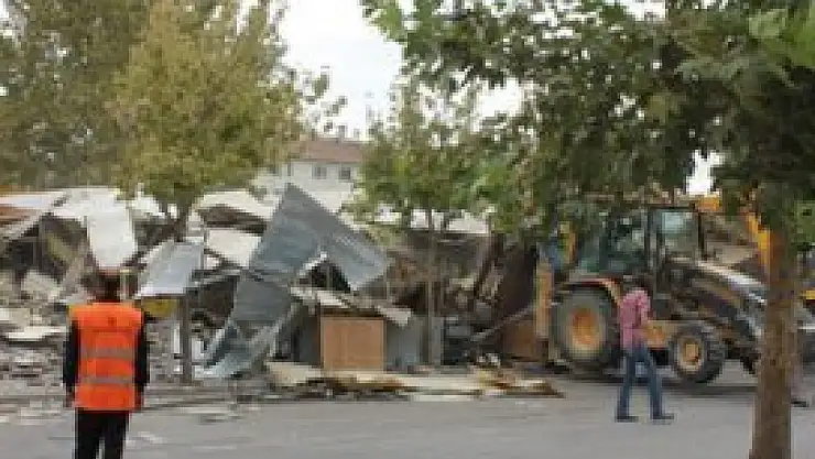 Konya'da seyyar satıcılara tahsis edilen 92 baraka ile 50 tezgah amacı dışında kullanıldığı ve trafiği engellediği gerekçesiyle yıkıldı.