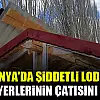 Şiddetli lodos nedeniyle Bankalar Caddesi'nde bulunan 3 katlı bir iş yerinin çatısı ile Taraşçı Mahallesi Okan Altıparmak Caddesi'ndeki bir evin çatısı uçtu.