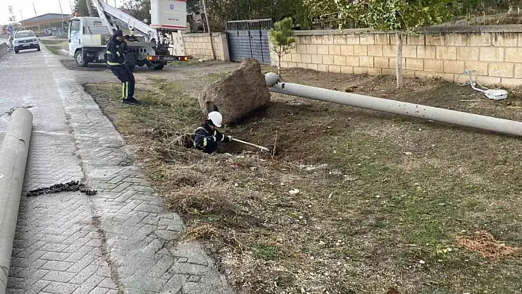 Konya'da şiddetli rüzgar elektrik direğini devirdi