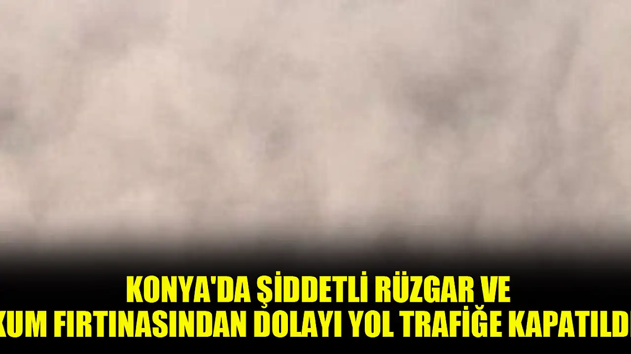 Konya'da şiddetli rüzgarla birlikte kum fırtınasından dolayı görüş mesafesinin düşük olmasından dolayı Konya-Cihanbeyli Yolu Cihanbeyli istikametine doğru 50. kilometrede Altınekin kavşağından tüm araçlara yol trafiğe kapatıldı.