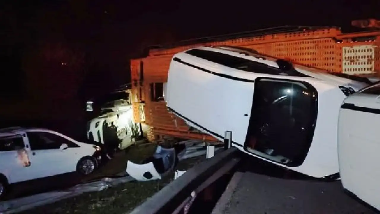 Konya'da sıfır araçları taşıyan tır devrildi