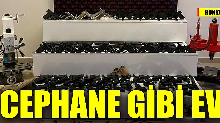 Selçuklu ilçesi Esenler Mahallesi'nde bir evde yapılan aramada 67 adet tabanca, yüzlerce tabanca parçası ve tabanca üretiminde kullanılan 1 adet Torna Tezgahı, 1 adet Pres Makinesi, 2 adet Taşlama Makinesi ve 1 adet Matkap ele geçirildi.