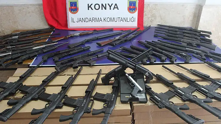 Konya'nın Beyşehir ilçesinde jandarma ekipleri, internet üzerinden ucuz fiyatla ve bazıları sinema ve dizi filmlerinde sahnelere konu olan M-16 silah görünümü kazandırılarak imal edilen 265 yasa dışı üretim silahı düzenlediği operasyonla ele geçirdi.