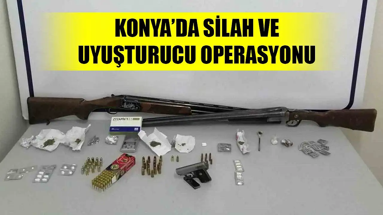 Konya'nın Karapınar ilçesinde polisin düzenlediği operasyonda silah ve uyuşturucu madde ele geçirildi.