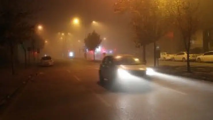 Konya'da gece saatlerinde kendini gösteren sis görüş mesafesini düşürdü.