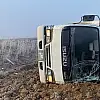 Konya'da sisli hava kazaya neden oldu, kamyonet devrildi