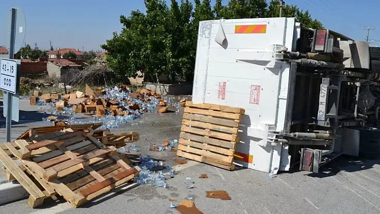 Edinilen bilgiye göre, K.Ş. idaresindeki 42 M 4777 plakalı su yüklü kamyonet, sürücünün kavşaktan dönerken başka bir otomobile çarpmamak için yaptığı manevra sonrası devrildi. Yan yatan kamyonetin kasasında bulunan su dolu pet şişeler yola saçıldı. Kazada kamyonet sürücüsü ile araçta bulunan M.K. yaralandı. Yaralılar olay yerine sevk edilen ambulansla Kulu Devlet Hastanesine kaldırılarak tedavi altına alındı. Yola saçılan su dolu pet şişeler ise, iş makineleriyle bulundukları yerden kaldırıldı.