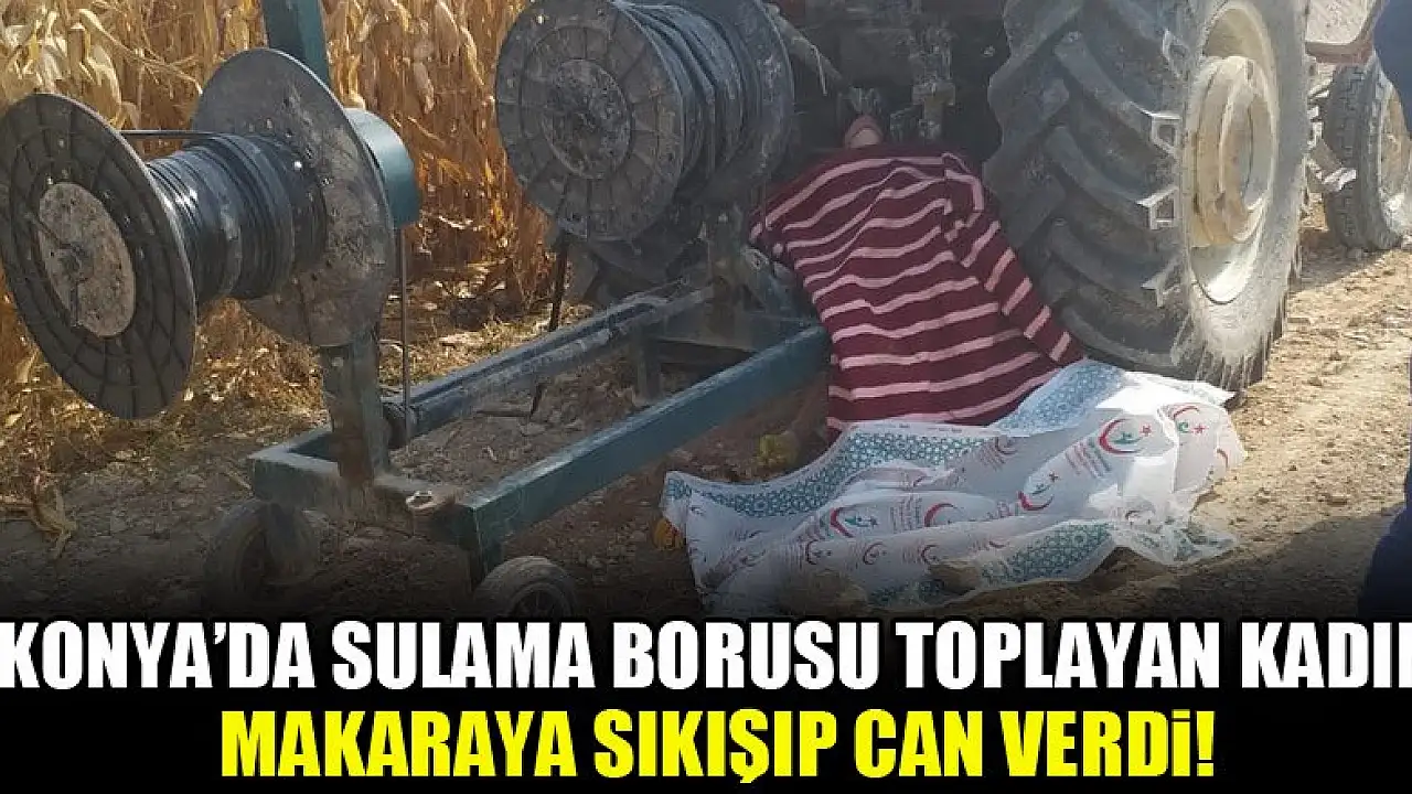 Konya'nın Karapınar ilçesinde mısır tarlasında çalışan kadın, sulama hortumu toplarken makaraya sıkışarak hayatını kaybetti.