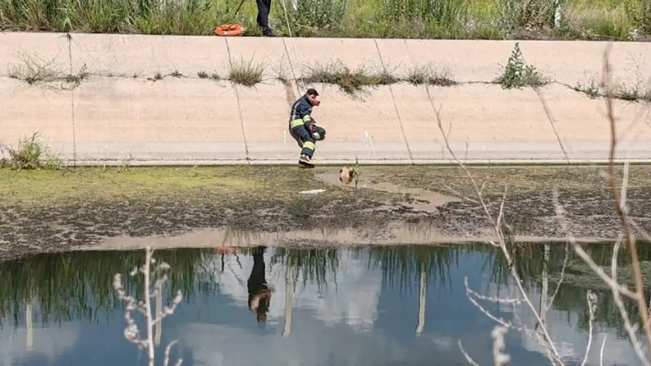Olay yerine gelen itfaiye ekipleri, sulama kanalına düşen köpeği kurtardıktan sonra doğal ortamına bıraktı.