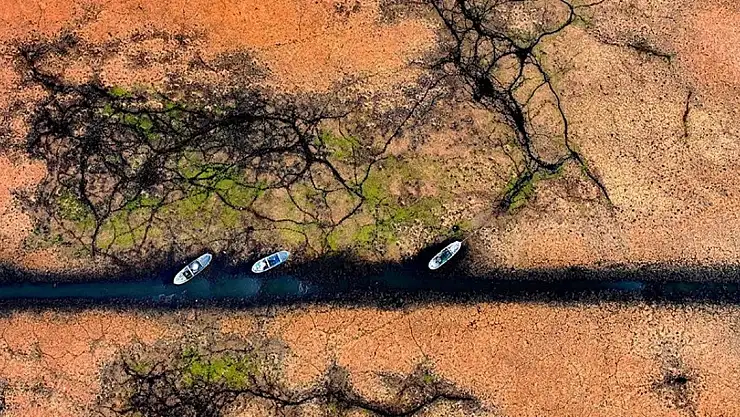 Karaya oturan gezi teknesi kuraklığın fotoğrafı oldu