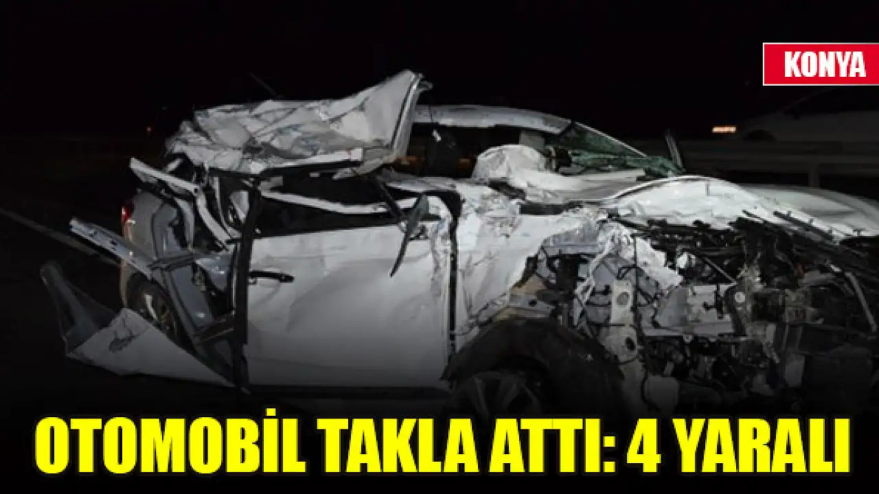 Konya'da sürücüsünün kontrolünden çıkan otomobil takla attı: 4 yaralı