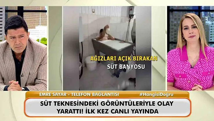 Türkiye, günlerce o işçiyi konuşmuştu. Konya'nın Meram ilçesinde süt toplama merkezinde bulunan kazanda süt banyosu yaptığı suçlamasıyla 6 gün cezaevinde kalan Emre Sayar, Kanal D ekranlarında hafta içi her gün yayınlanan, sunuculuğunu Hakan Ural ve Nur Tuğba Namlı'nın yaptığı Neler oluyor Hayatta programına telefonla bağlandı. Sayar, sosyal medya aracılığıyla kendisine hakaret ettiğini tespit ettiği 70 kişiye dava açtığını söyleyerek iftiraya uğradığını öne sürdü.