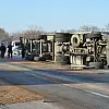 Konya'nın Ereğli ilçesinde süt ürünleri yüklü tırın devrilmesi sonucu sürücü yaralandı.
