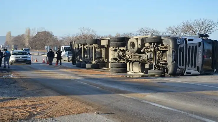 Kaza, Ereğli ilçe merkezi çıkışı Konya Adana Kara yolu üzerinde meydana geldi. Edinilen bilgiye göre, E.K. idaresindeki 16 EFE 60 plakalı süt ürünleri yüklü tır, sürücünün direksiyon hakimiyetini kaybetmesi sonucu kontrolünden çıkarak yola devrildi.