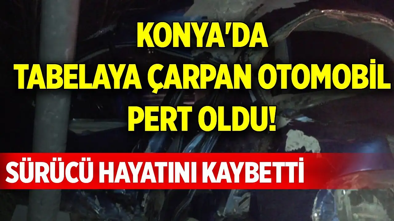 Konya'da yol kenarındaki tabelaya çarpan otomobilin sürücüsü hayatını kaybetti.