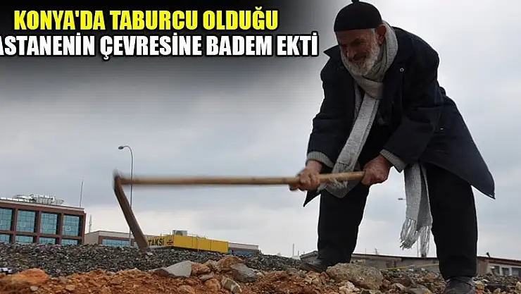 Konya'da taburcu olduğu hastanenin çevresine badem ekti