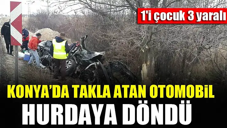 Konya'da sürücüsünün kontrolünden çıkan otomobilin takla atıp yol kenarındaki ağaça çarpması sonucu meydana gelen kazada 1'i çocuk 3 kişi yaralandı.