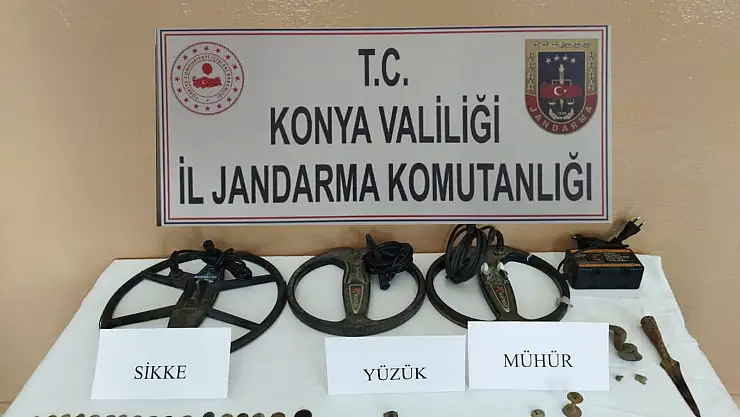 Konya'nın Çumra ilçesinde jandarma ekiplerinin bir eve düzenlediği operasyonda, çok sayıda tarihi eser obje ve sikke ele geçirdi.