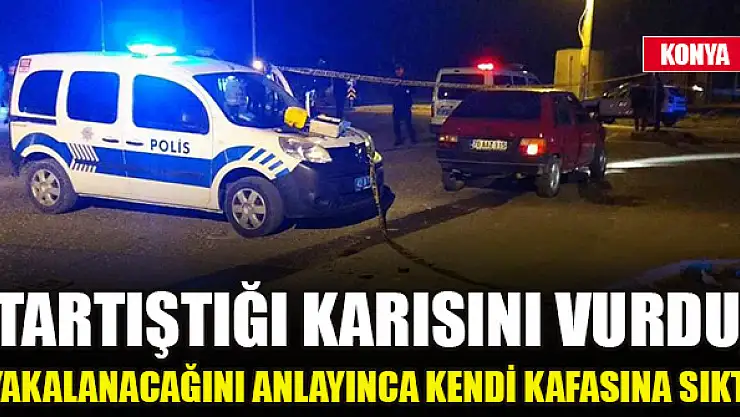 Konya'da tartıştığı eşini yanında bulunan tabancayla kafasından yaralayarak otomobil ile olay yerinden kaçtı. Polis ekiplerini fark ederek aracıyla kaçan şüpheli aynı yönde seyir halindeki bir araca çarpması sonucu durdu ve eşini yaradığı silahla kafasına ateş ederek kendini ağır yaraladı.