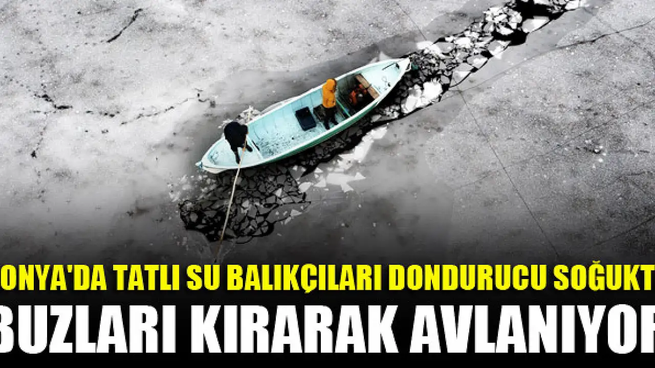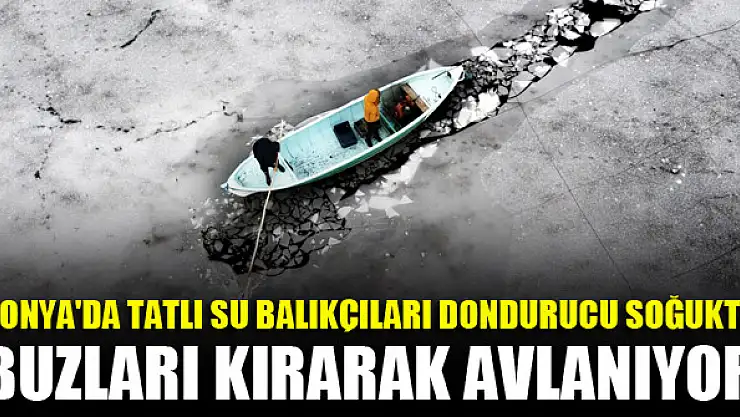 Konya'da tatlı su balıkçıları dondurucu soğukta buzları kırarak avlanıyor
