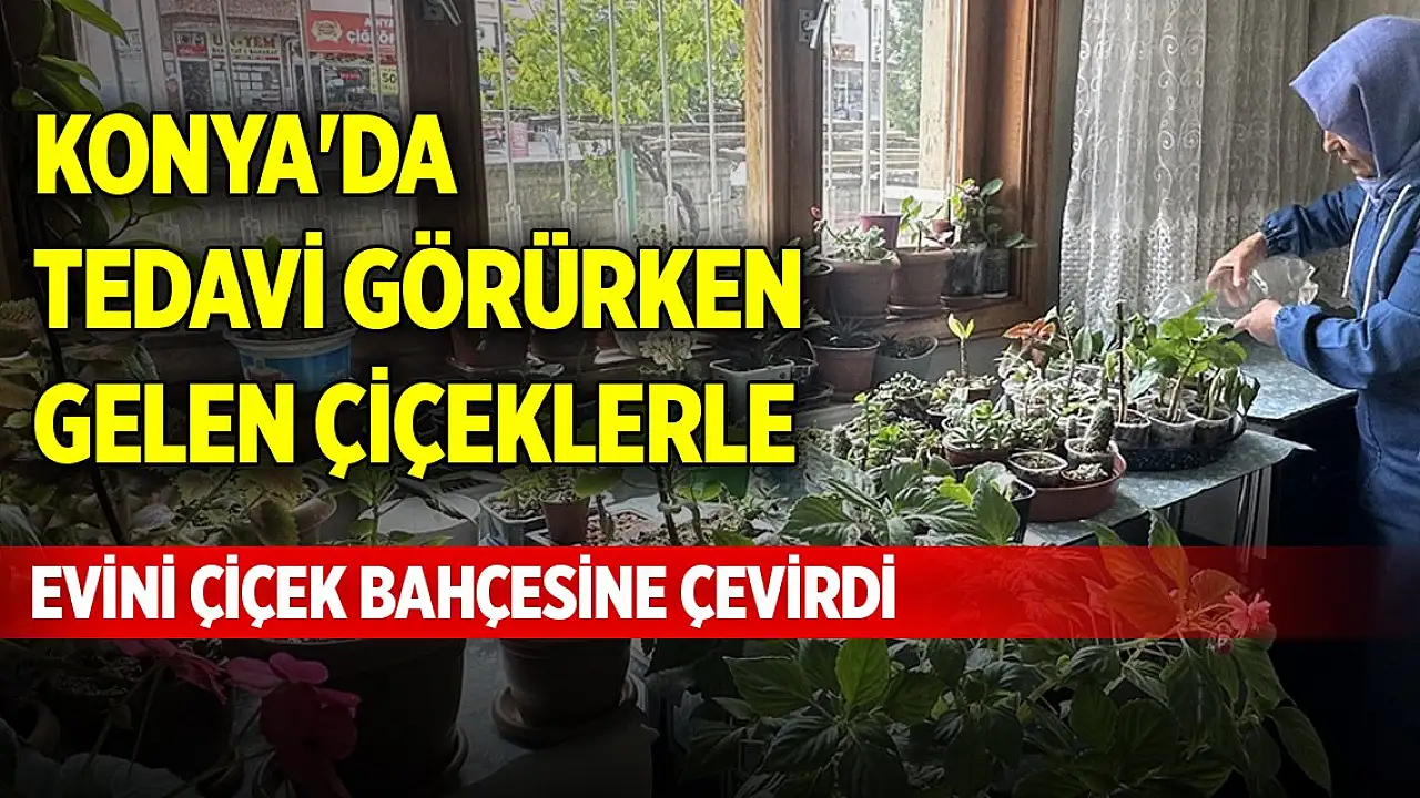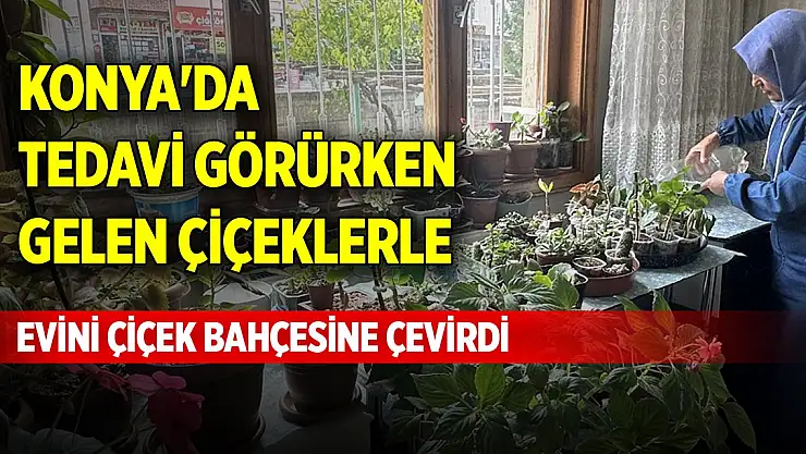 Konya'da tedavi görürken gelen çiçeklerle, evini çiçek bahçesine çevirdi