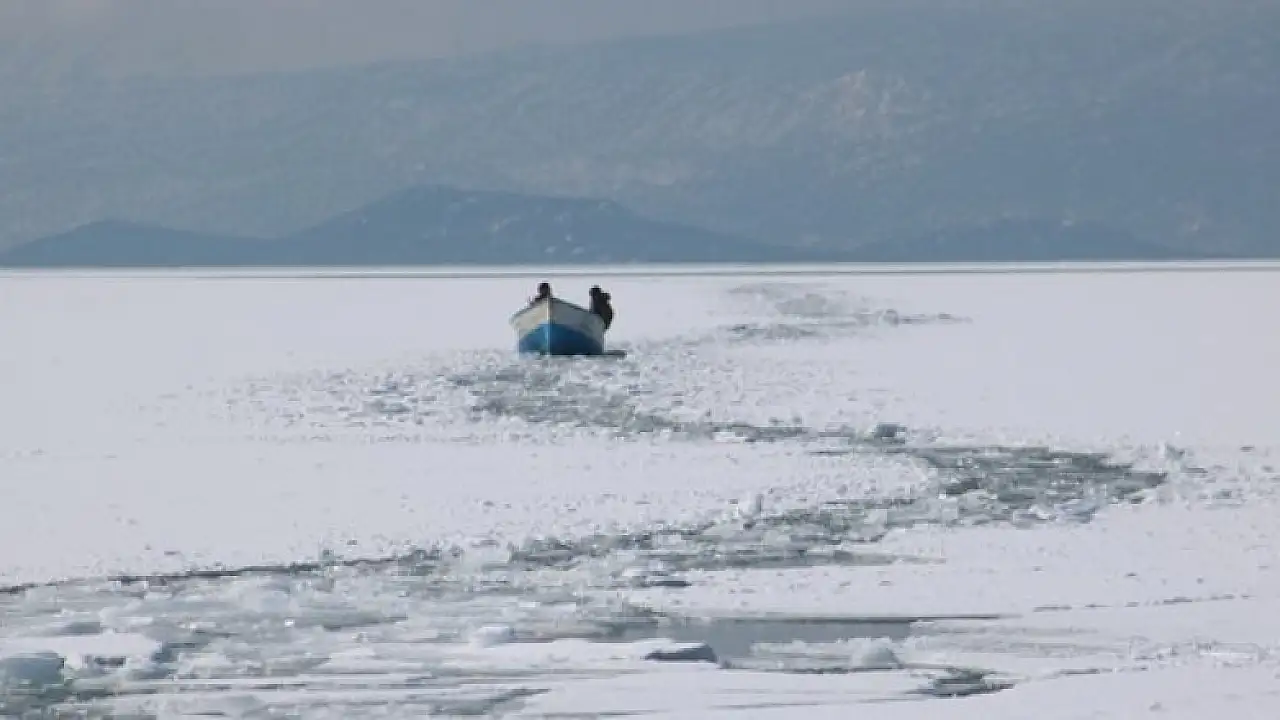 Balıkçı Musa Yılmaz da 5 tekneyle göldeki ağları kontrol etmeye gittiklerini belirterek, "Arkadaşın kayığını poyraz esmesiyle buz sıkıştırdı. Kayıkları batınca buzun üstüne çıkarak kurtuldular." dedi.