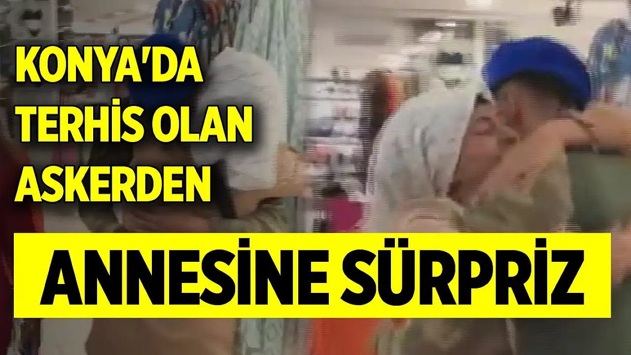 Vatani görevini tamamlayan Fırat Kasımoğlu (21), Konya'da, askeri üniformayla, alışveriş merkezinde annesi Gülcan Kasımoğlu'nun karşısına çıkıp, sürpriz yaptı. O anlar cep telefonu kamerasıyla kayda alındı.