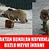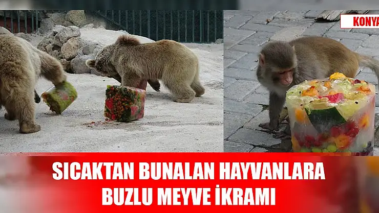 Konya'nın Karatay ilçesinde bulunan Karatay Belediyesi Hayvanat Bahçesi'nde hava sıcaklığı yaklaşık olarak 41 dereceye ulaşınca sıcaktan bunalan hayvanlara buzlu meyve verildi. Maymun ve boz ayıya, içinde meyvelerin bulunduğu buz kokteylleri verildi. Sıcaktan hareketleri de yavaşlayan hayvanlar, iştahla buzlu meyveleri tüketti.