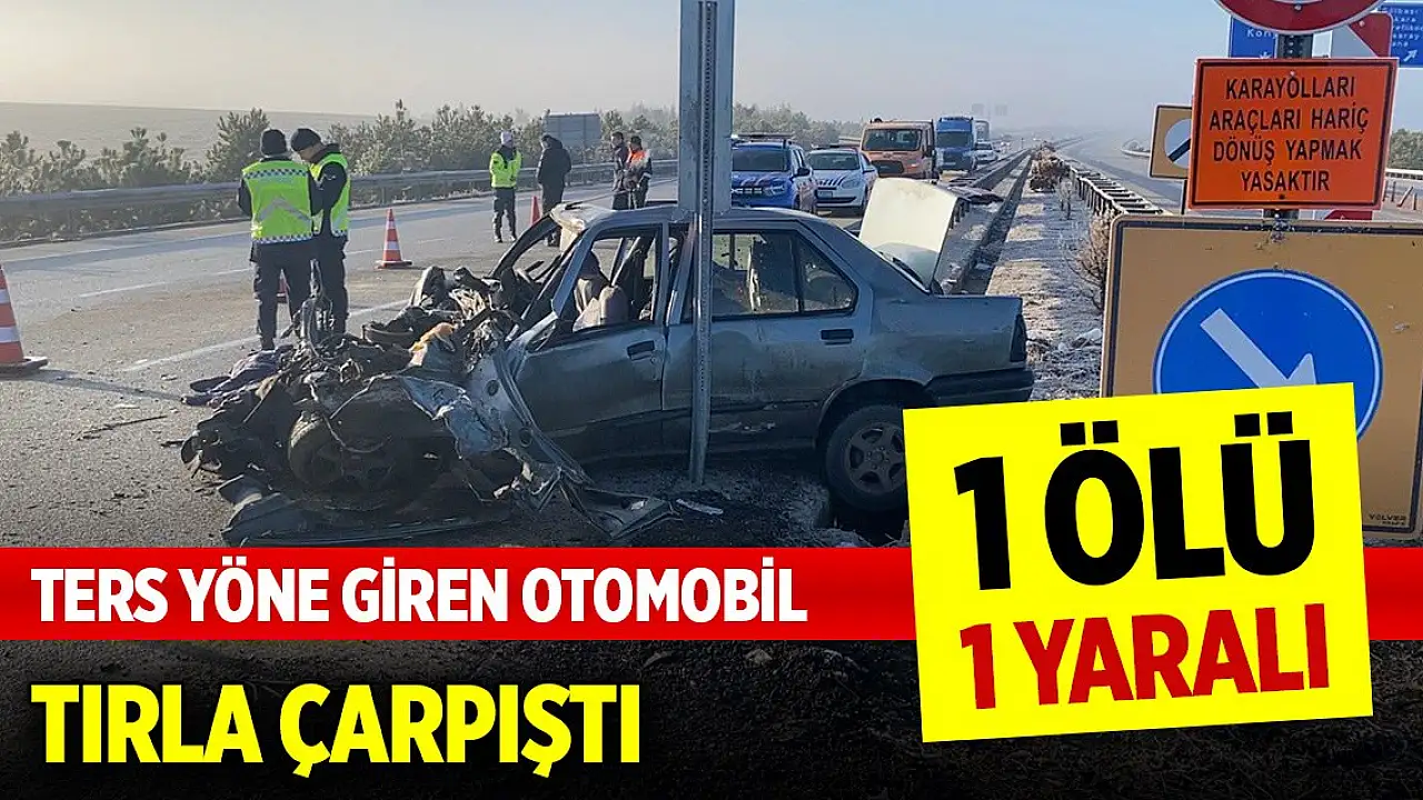 Konya'da ters yöne giren otomobil tır ile çarpıştı. Kazada 1 kişi hayatını kaybetti, 1 kişi yaralandı.