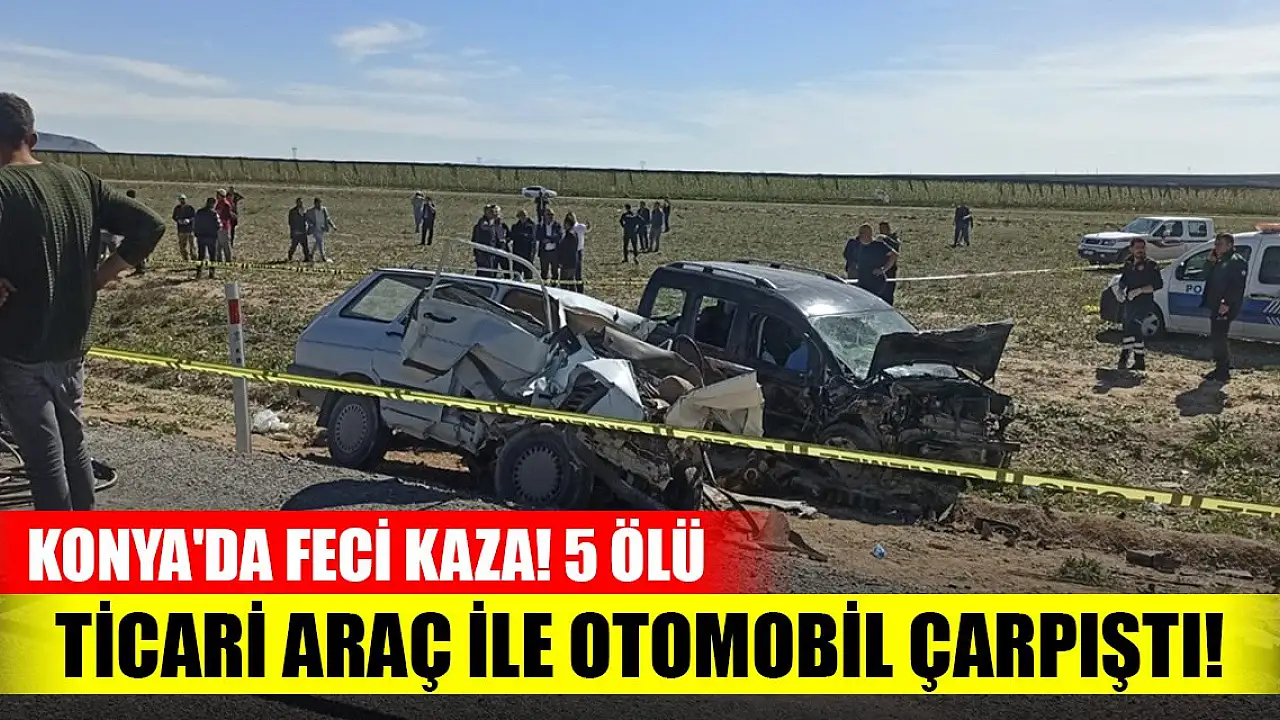 Konya'nın Karapınar ilçesinde ticari araç ile otomobilin çarpışması sonucu 5 kişi hayatını kaybetti, 2 kişi yaralandı.